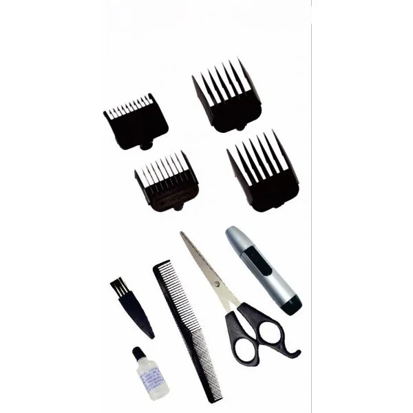 Matu griešanas mašīna Rosberg 5R51810MNC, 10W, šampanieša krāsā. Augstas kvalitātes nerūsējošā tērauda asmeņi. Regulējams asmeņu vadības slēdzis. Ergonomisks dizains ar gumijotu pārklājumu. Ļoti klusa un jaudīga darbība. Komplektā ietilpst deguna trimmeris. Pilns piederumu komplekts: 4 uzgaļi (3, 6, 9 un 12 mm), šķēres, matu ķemme, tīrīšanas birstīte, eļļa un asmeņu aizsargs. Mašīnas barošanas avots: 220–240V, 50–60Hz. Jauda: 10W. Trimmera barošana: viena AA baterija (nav iekļauta).